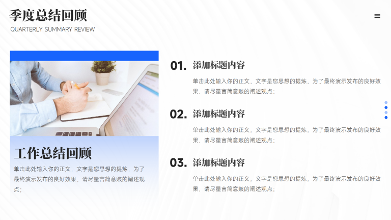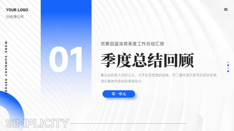 当前位置:第一PPT网 - 蓝色清爽季度工作总结汇报