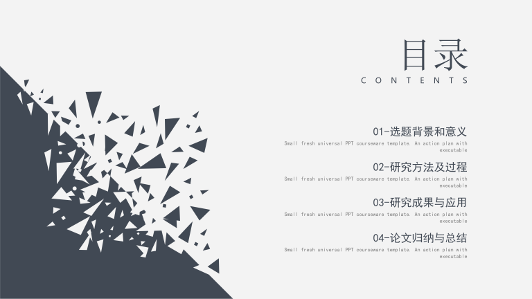当前位置:第一PPT网 PPT模板 大学生通用演示模板 大学生通用演示模板PPT模板共有16页,更多模板预览效果请通过网盘免费下载后查看全部! 总结汇报 免责声明: 本站所有PPT模板,如无特殊说明或标注,均为用户上传分享,仅可作为学习参考使用,模板版权归原作者所有,本站仅为免费传播分享,不承担任何责任。如若本站内容侵犯了原著者的合法权益,可联系我们进行处理。 当前网页地址:https://www.diyippt.cn/muban/279.html 当前位置:第一PPT网 - 大学生通用演示模板